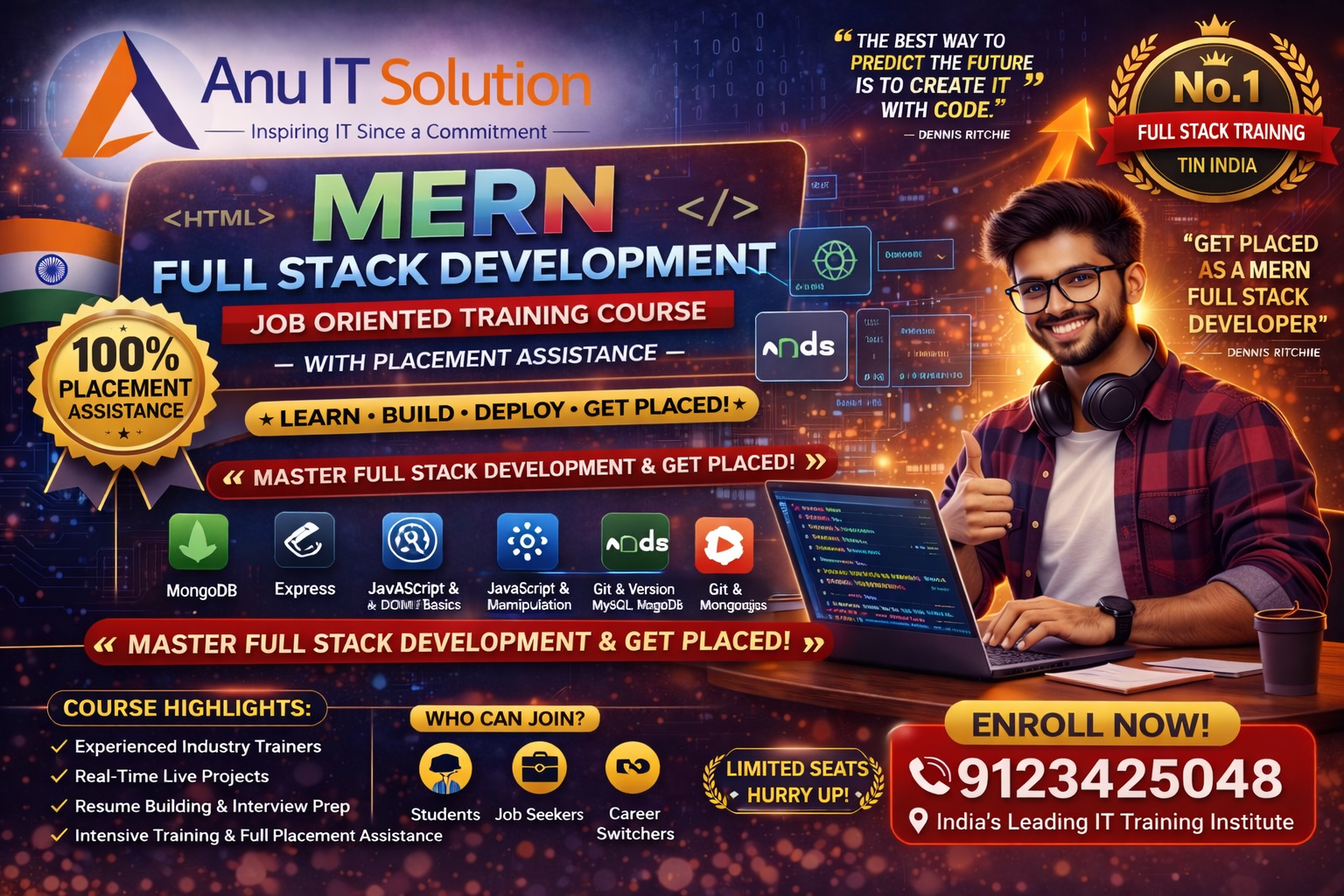 Professional MERN full stack web development course services across India.