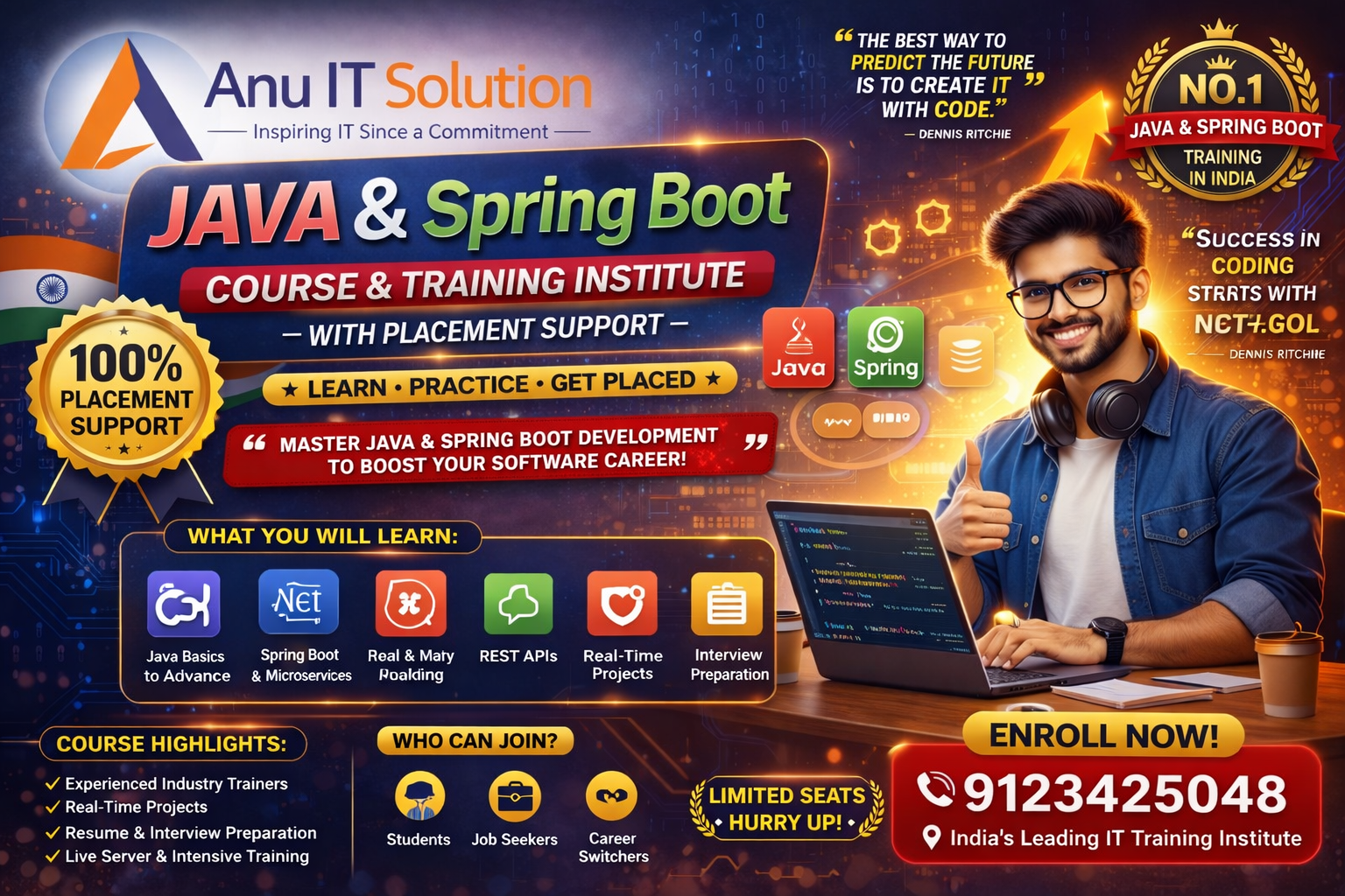 Professional Java & spring boot Programming Classes and Training Institute with Placement services across India.