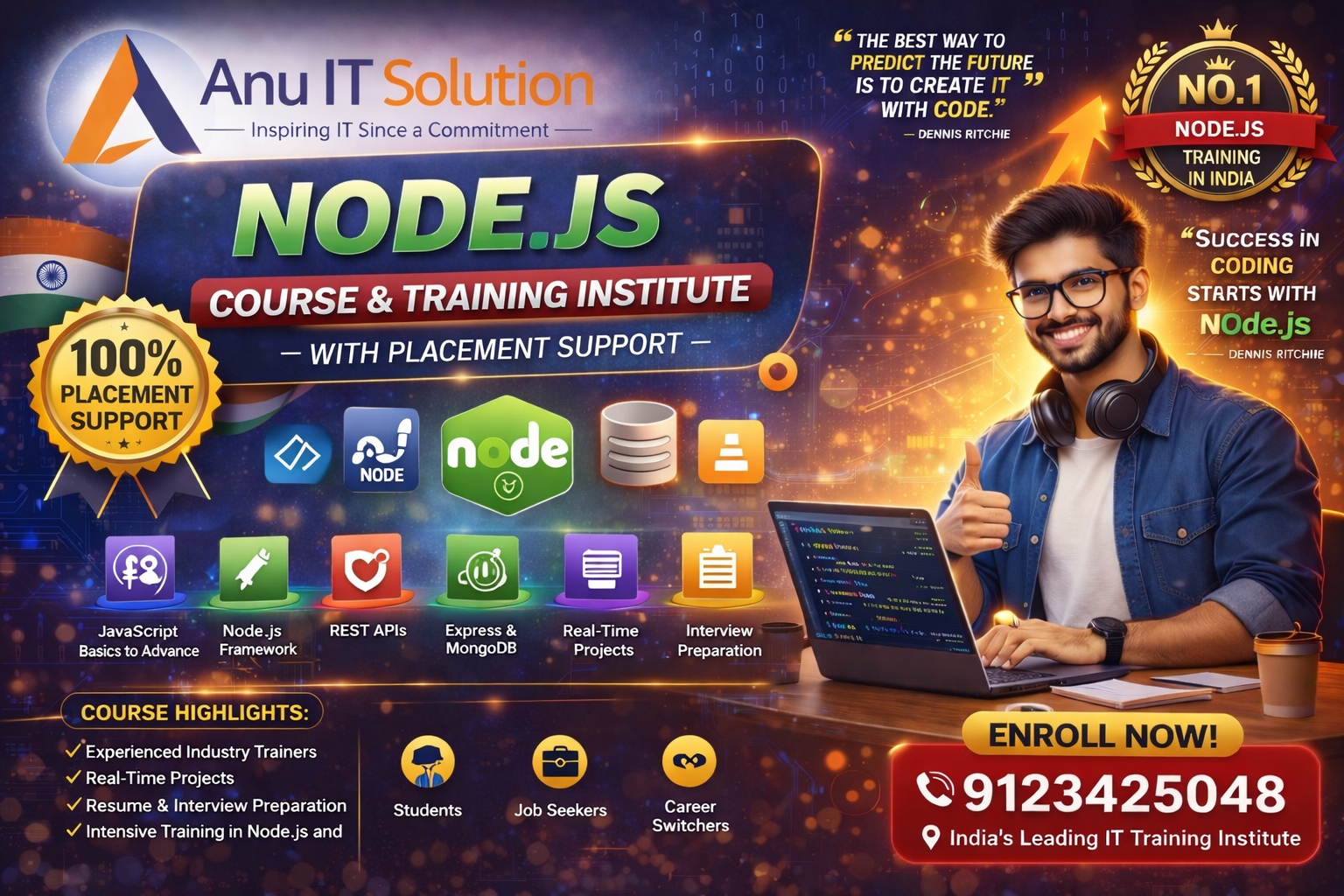 Professional Node js Programming Course and Training Institute with Placement services across India.