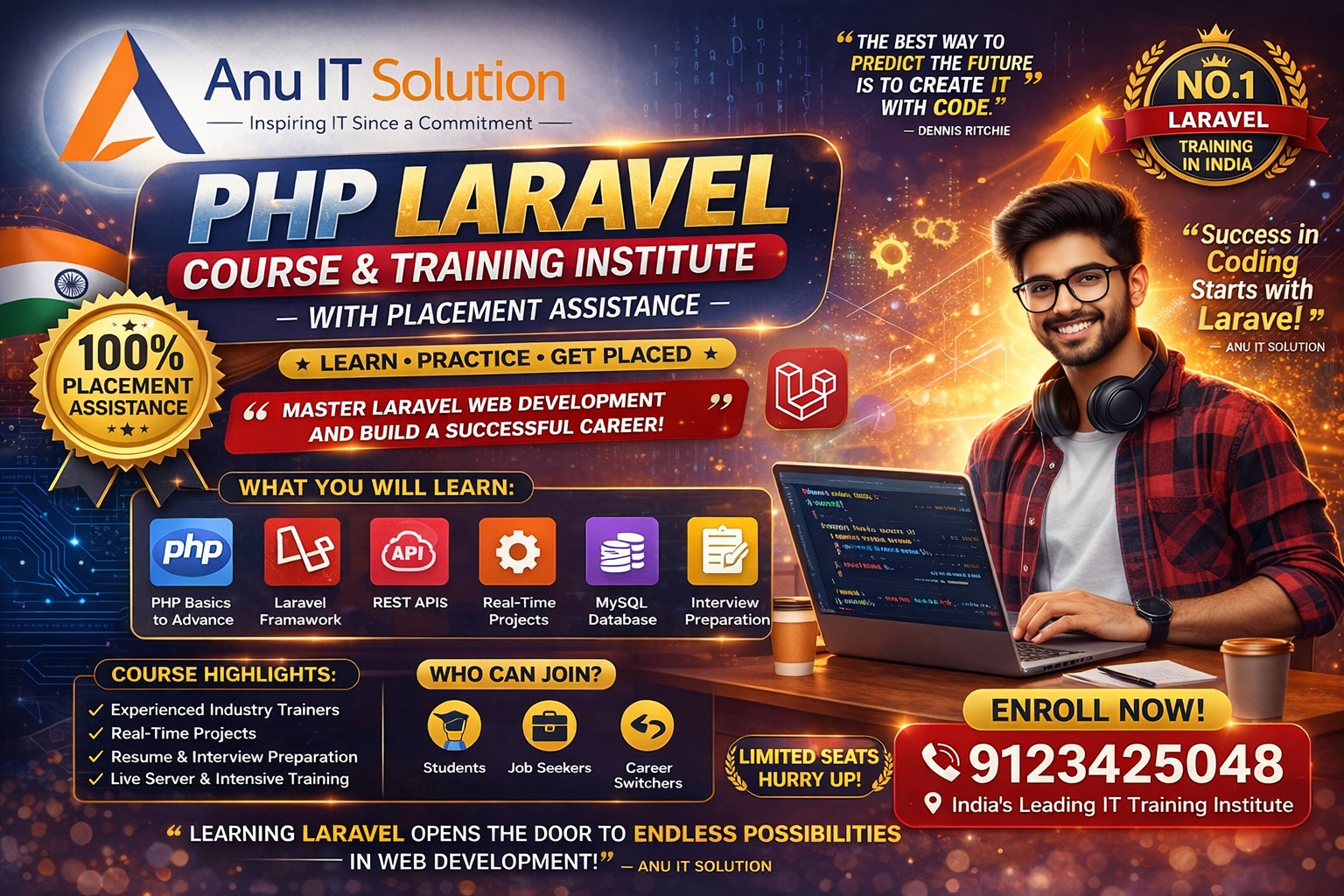 Professional PHP laravel Programming Course and Training Institute with Placement services across India.